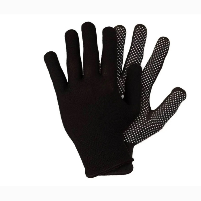 Рукавички трикотажні з мікроточковим покриттям ПВХ для захисту рук від ризиків механічних пошкоджень і бруду. Можна використовувати під час ремонтно-будівельних, сільськогосподарських, побутово-господарських, вантажно-розвантажувальних робіт; робіт з інструментом, що не потребує ізоляції та має невисокі температури нагрівання поверхні. Розмір рукавичок є універсальним завдяки використаному матеріалу - нейлон. Рукавички дуже добре розтягуються, тому вони підходять як для жіночих, так і для чоловічих рук розміром 8, 9 і 10.Мікроточкове покриття ПВХ забезпечує міцний хват і надійне утримання важких, слизьких або полірованих предметів.Перешкоджає прослизання та прокручування важкого ручного інструменту в долоні, перешкоджає утворенню мозолів.Трикотажне полотно з нейлону має високу міцність, стійкість до механічних впливів і невисоких температур.Легкий та еластичний матеріал дозволяє працювати з дрібними деталями та виконувати роботи високої точностіЕластичний манжет забезпечує надійну фіксаціюЛегко знімаються та одягаються, комфортні під час використання